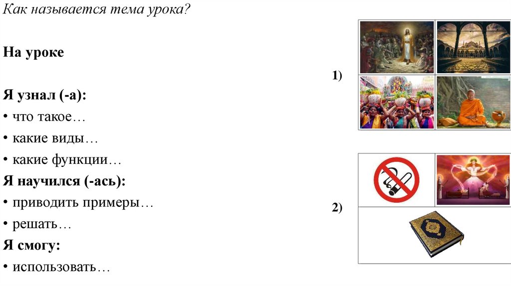 План урока1) Признаки религии