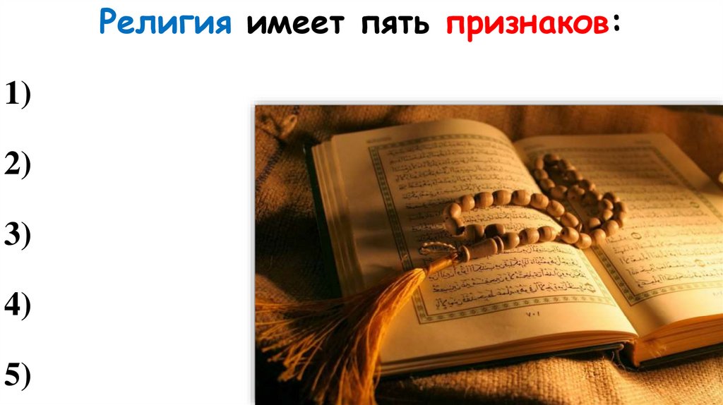 Религия имеет пять признаков:1)