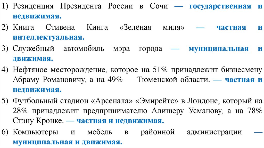 1) Резиденция Президента России в Сочи — государственная инедвижимая.