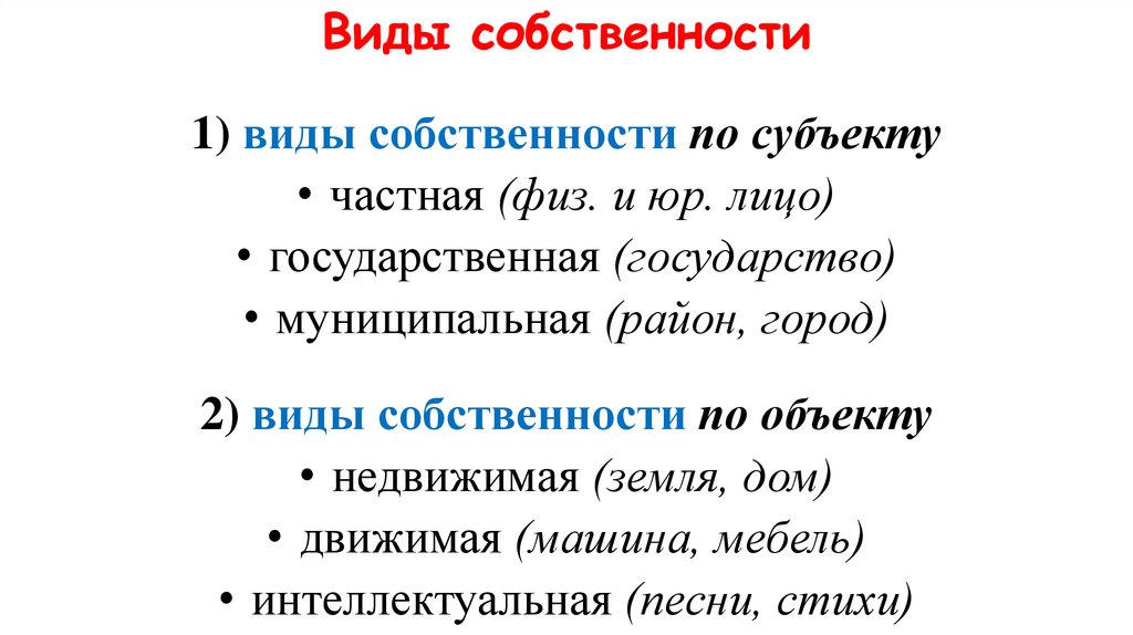 Виды собственности1) виды собственности по субъекту