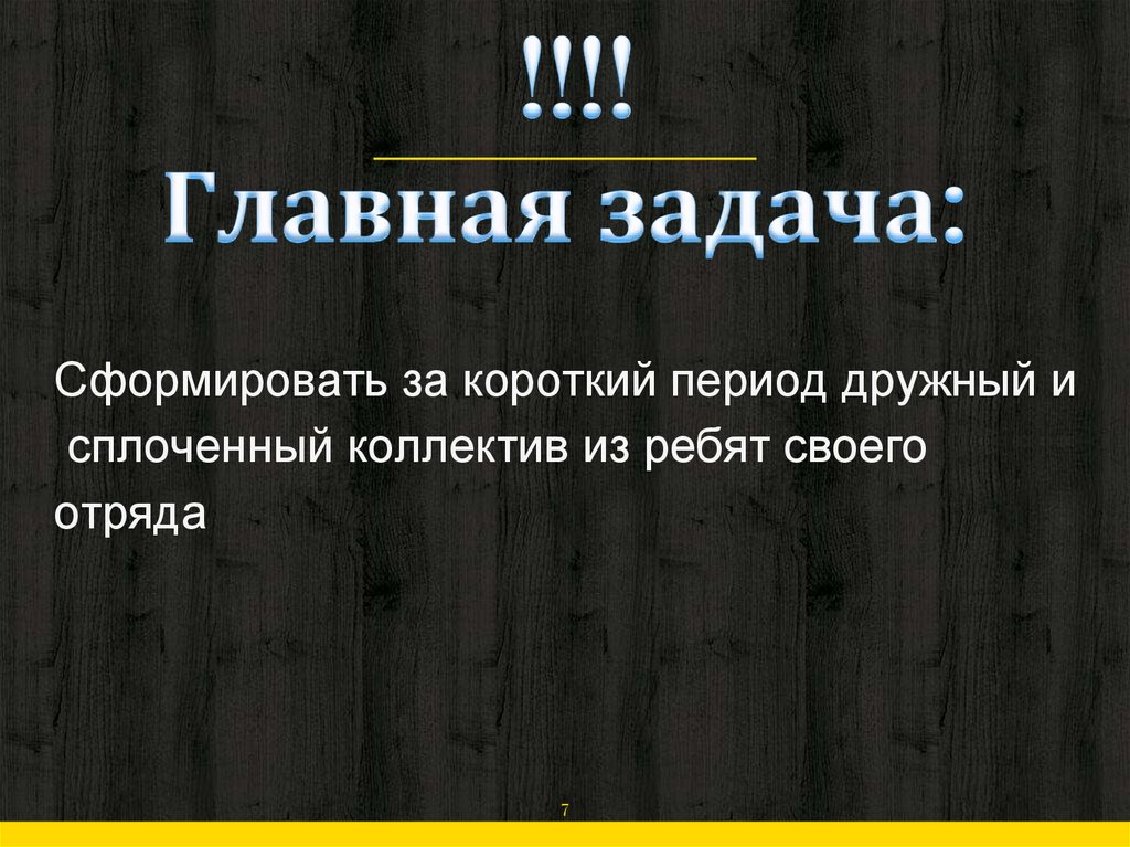 Сформировать за короткий период дружный исплоченный коллектив из ребят своего