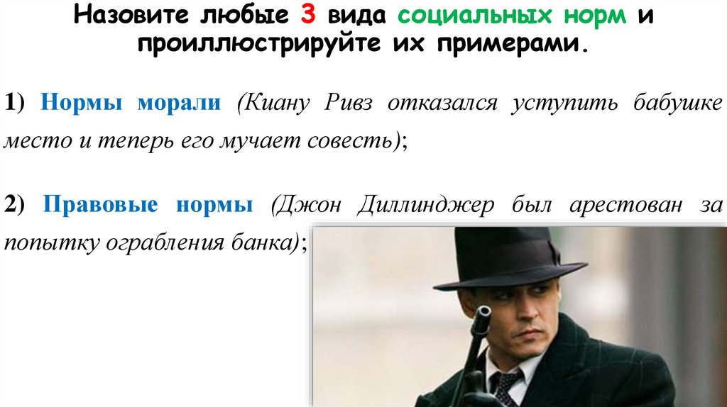2) Правовые нормы (Джон Диллинджер был арестован за