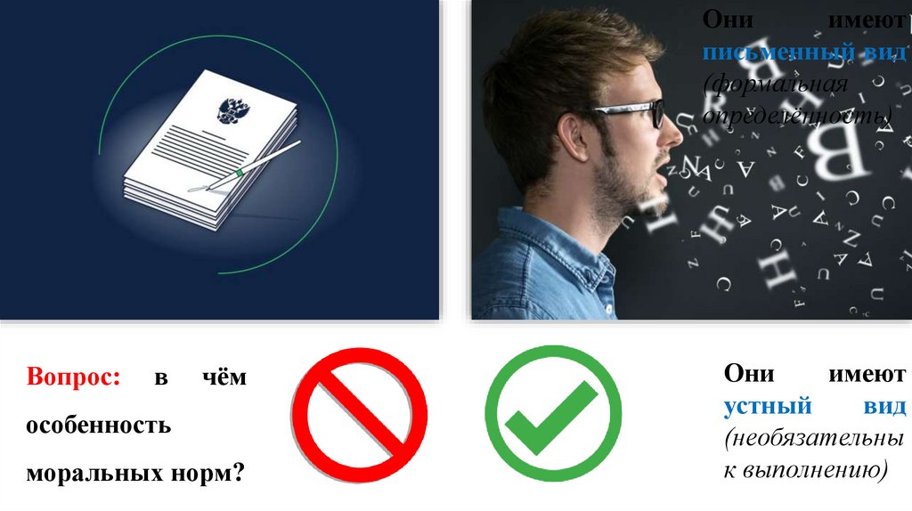 Виды социальных норм1) Моральные (этические) — правила поведения,