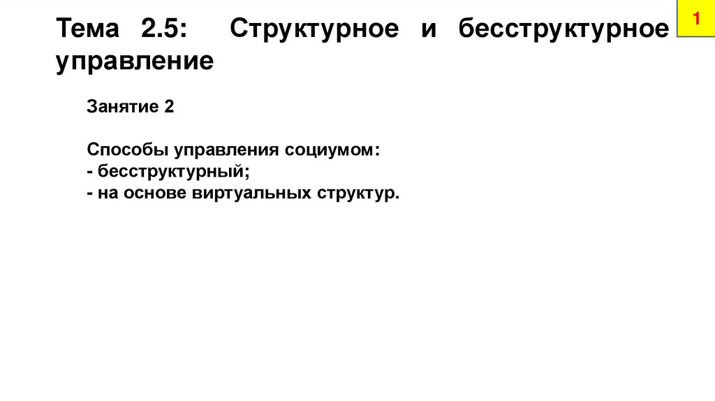 22Тема 2.5: Структурное и бесструктурное управление