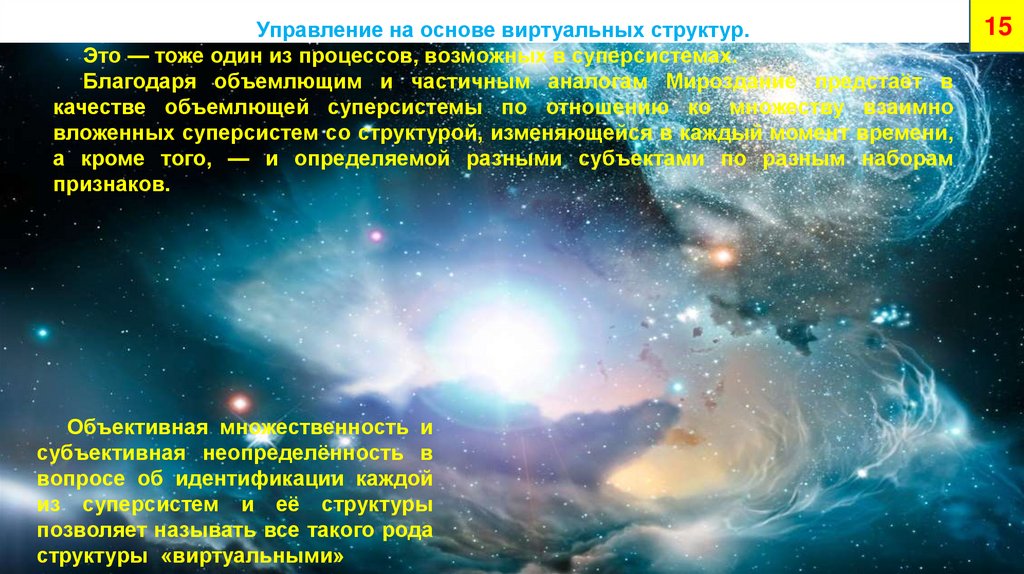 Любое проникновение структурного управления в суперсистему извне — в нейпредстаёт как управление на основе виртуальных структур вне зависимости от