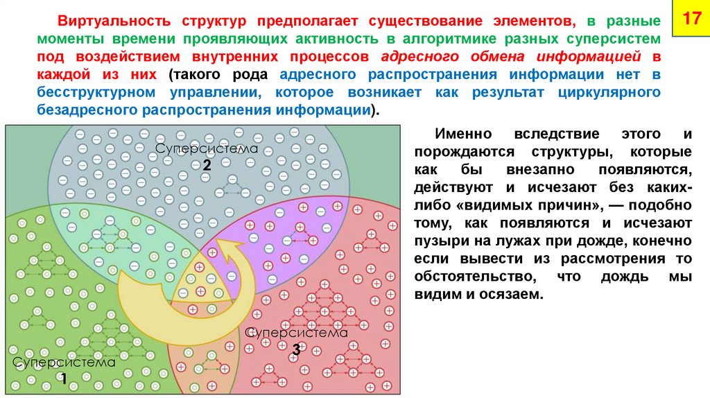 Виртуальность структур предполагает существование элементов, в разныемоменты времени проявляющих активность в алгоритмике разных суперсистем