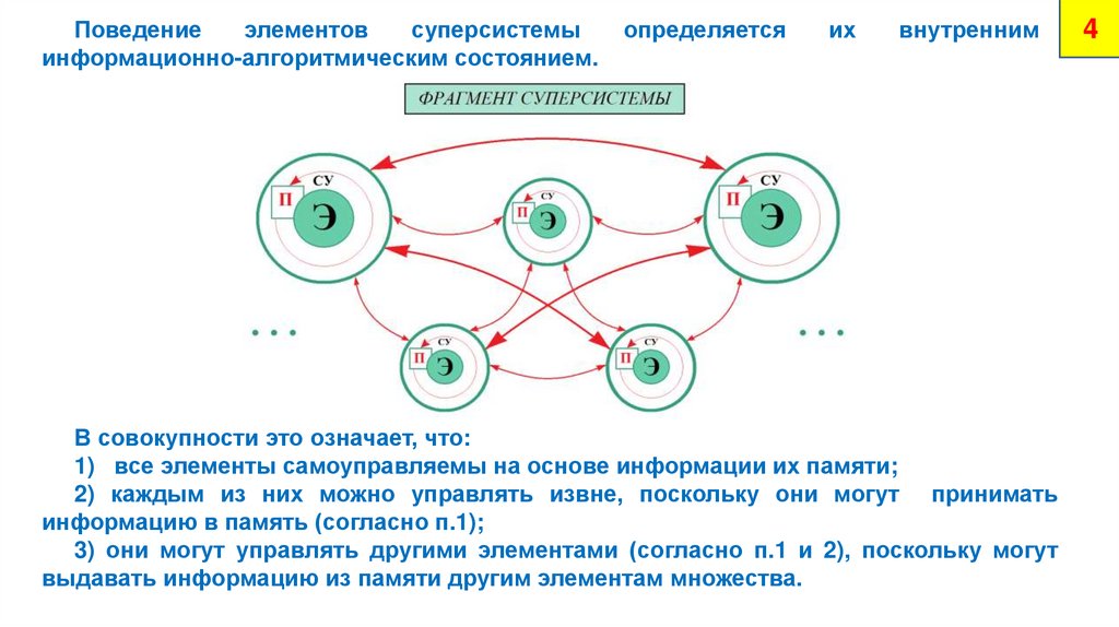 1) все элементы самоуправляемы на основе информации их памяти;