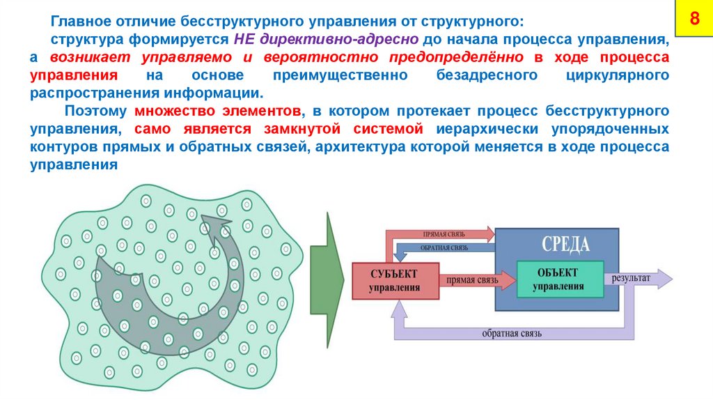 Главное отличие бесструктурного управления от структурного:структура формируется НЕ директивно-адресно до начала процесса управления,