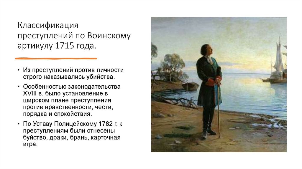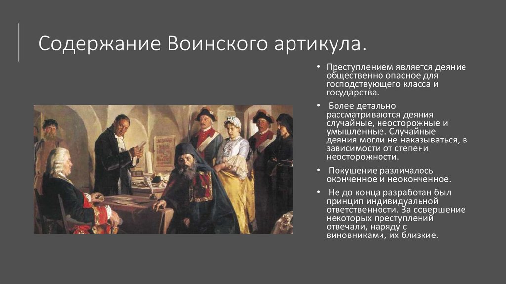 Содержание Воинского артикула.• Преступлением является деяние