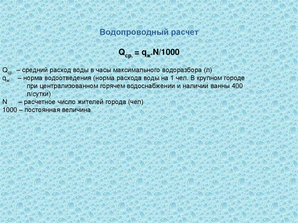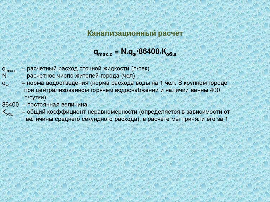 Канализационный расчетqmax.c = N*qж/86400*Кобщ