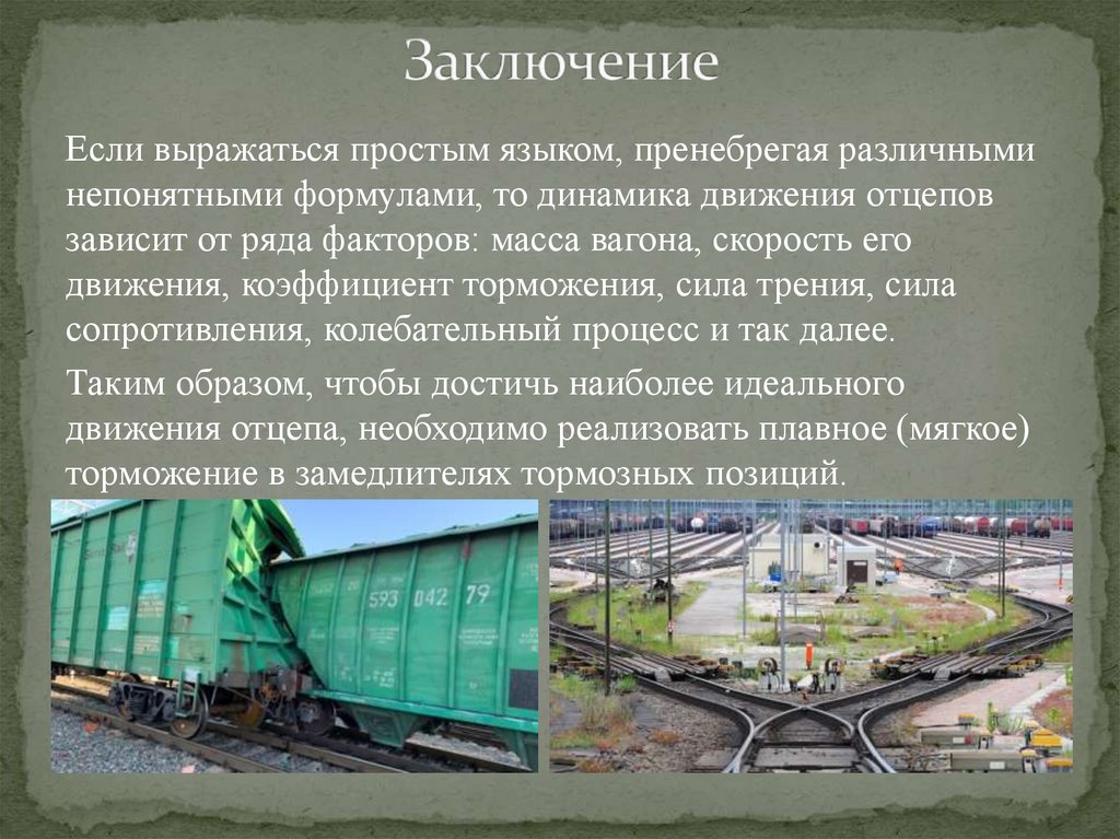 Если выражаться простым языком, пренебрегая различныминепонятными формулами, то динамика движения отцепов