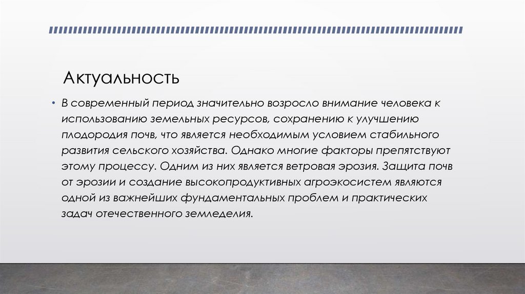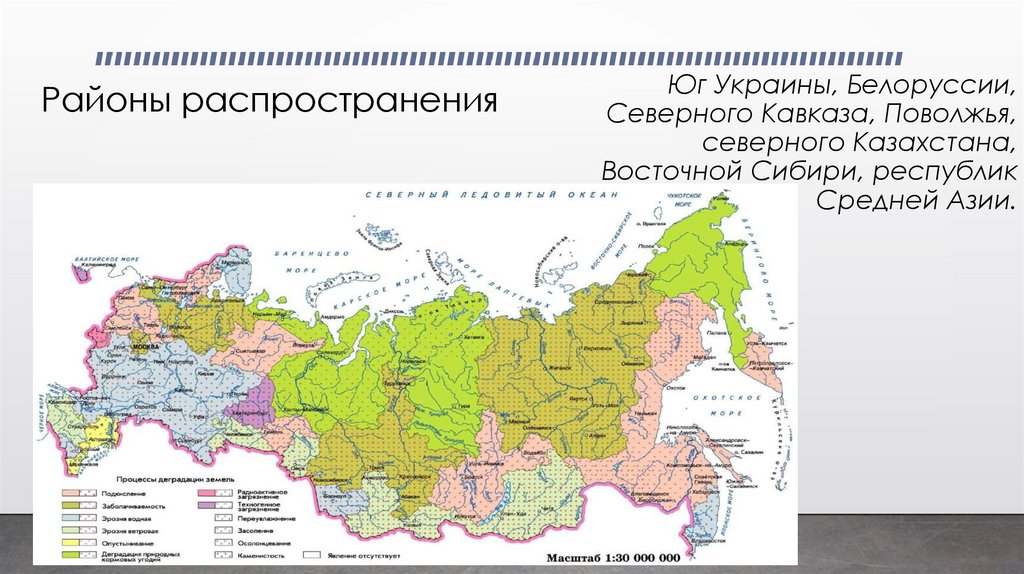 • Основная проблема: пагубное влияние развития ветровой эрозии