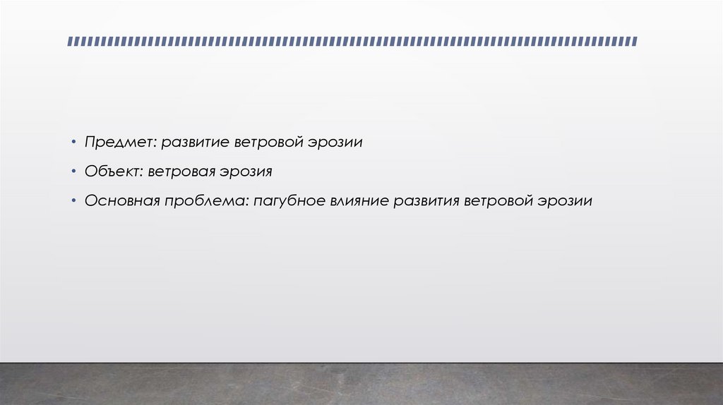 • Предмет: развитие ветровой эрозии• Объект: ветровая эрозия