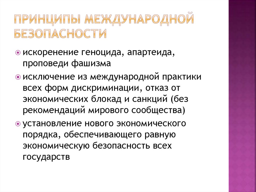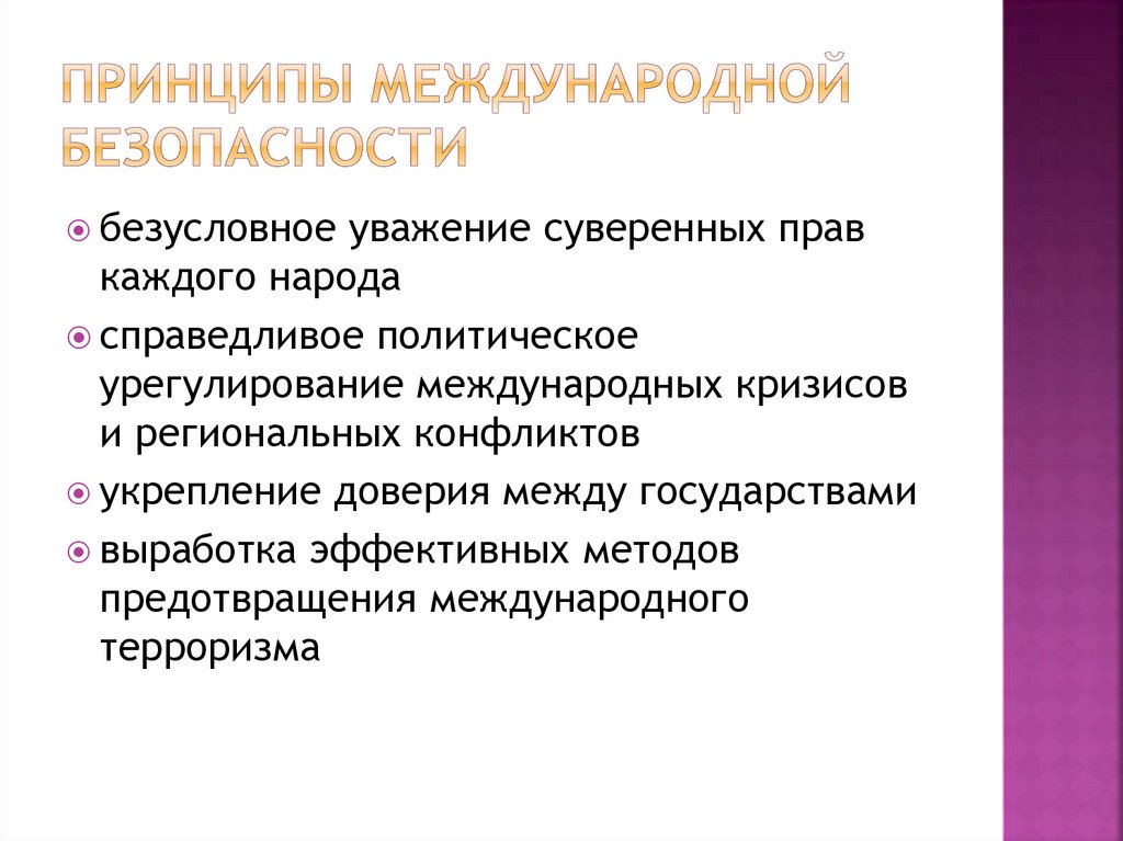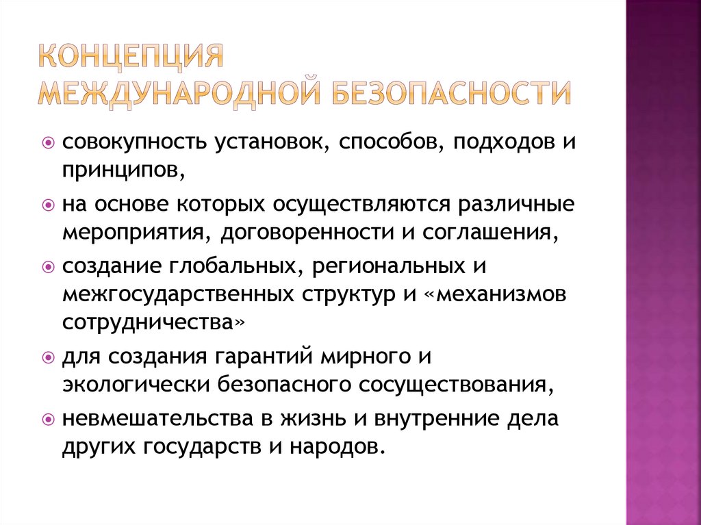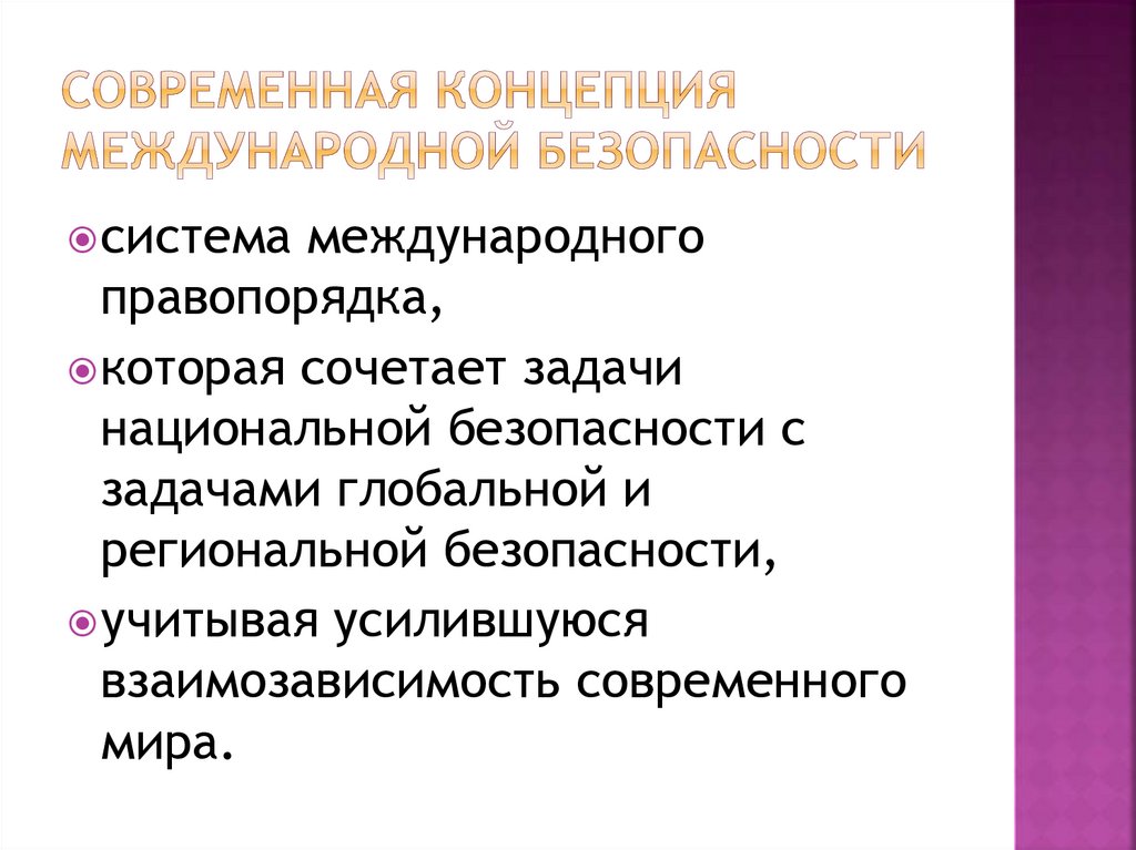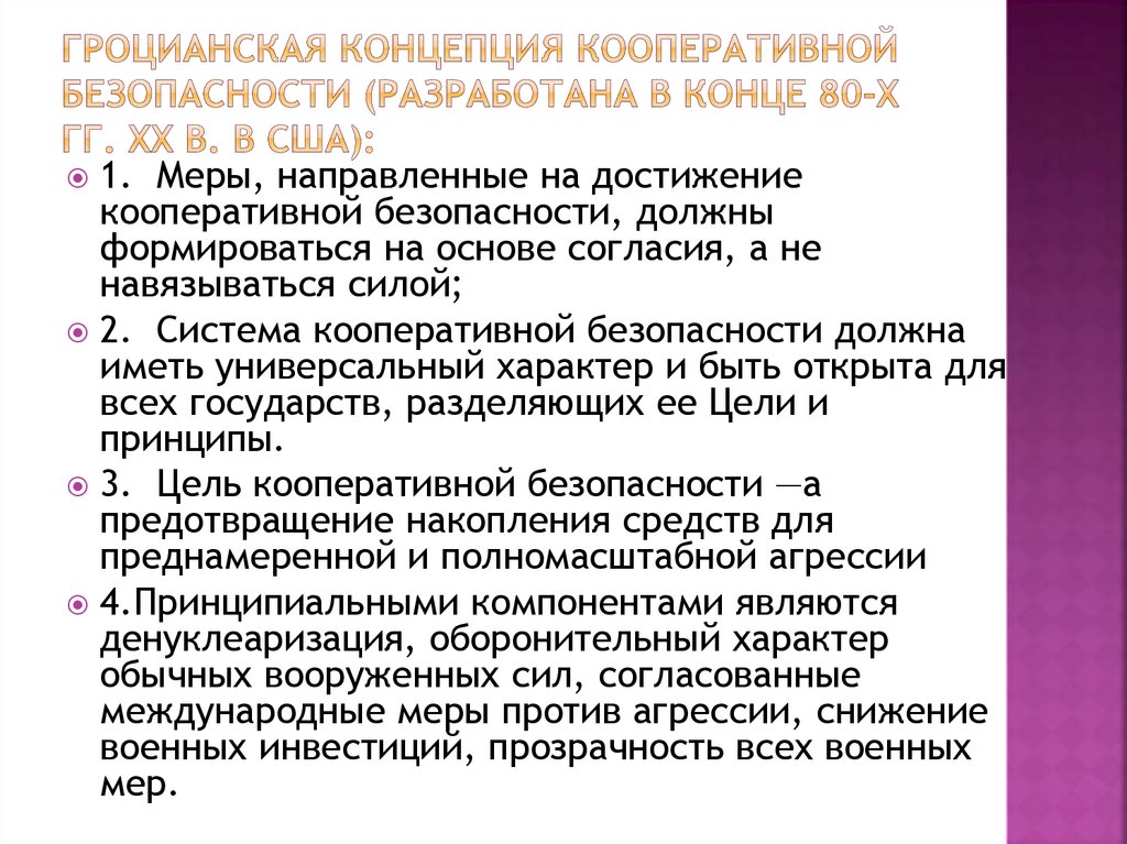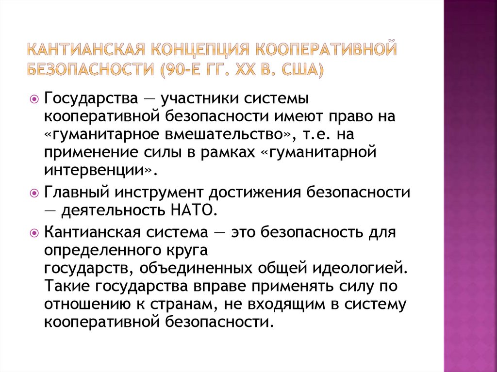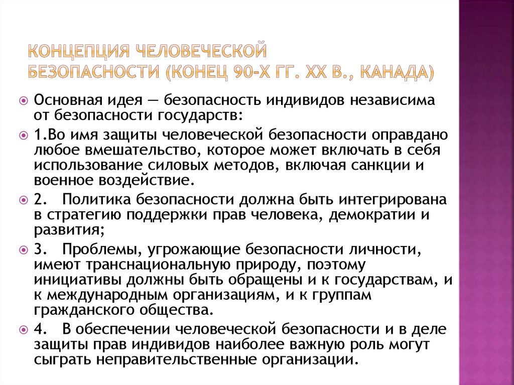 Основная идея — безопасность индивидов независимаот безопасности государств: