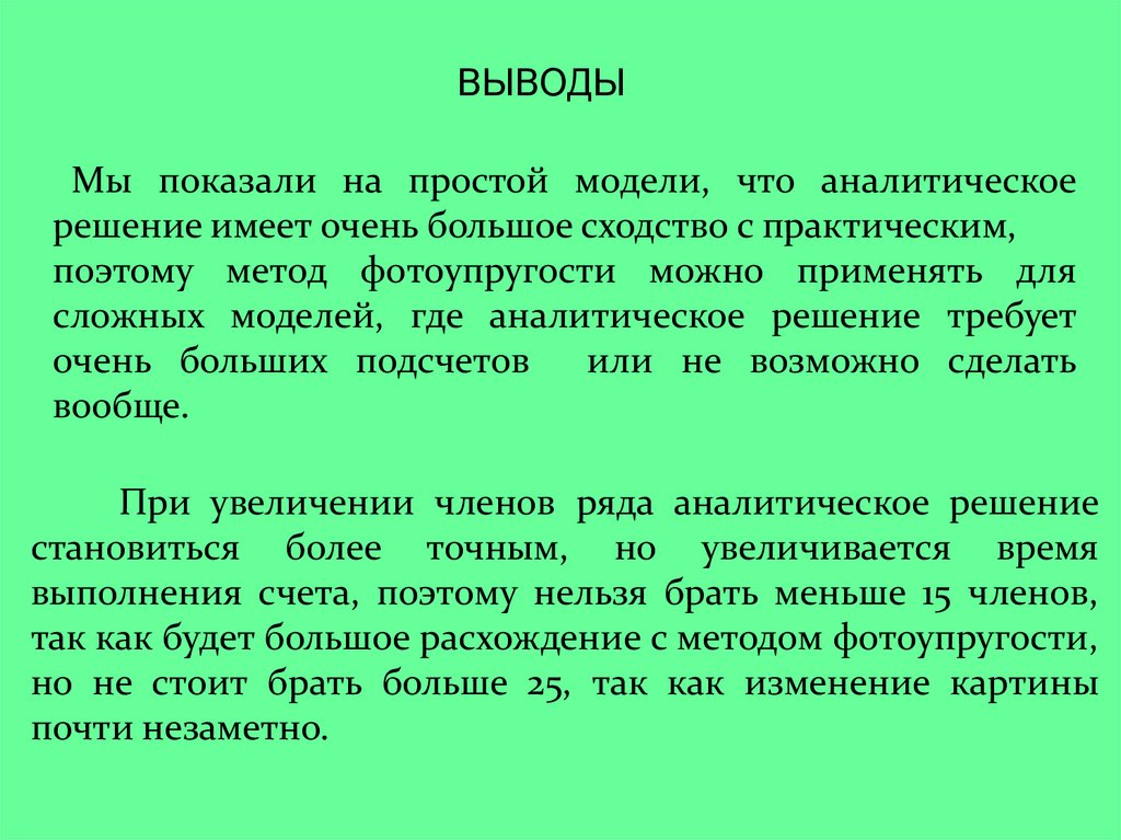 ВЫВОДЫМы показали на простой модели, что аналитическое
