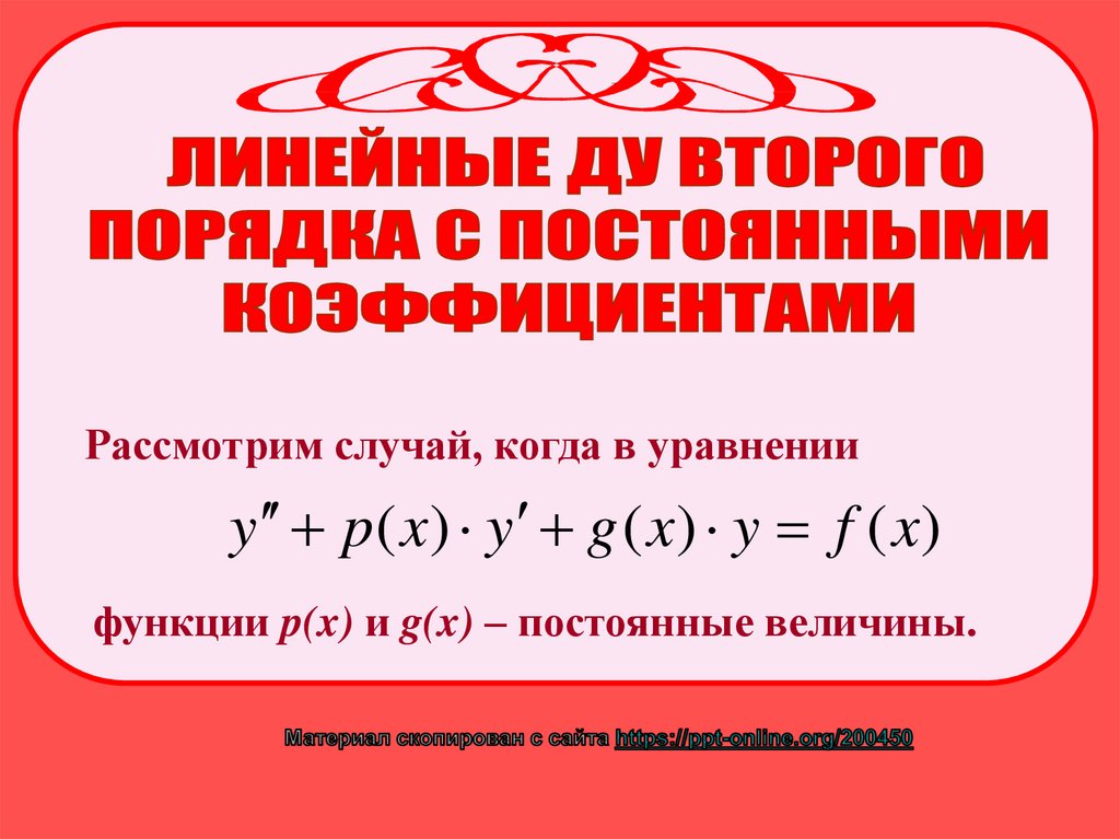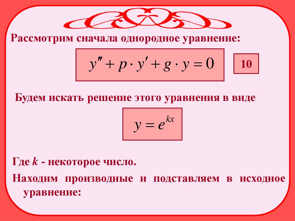 Рассмотрим сначала однородное уравнение:y p y g y 0
