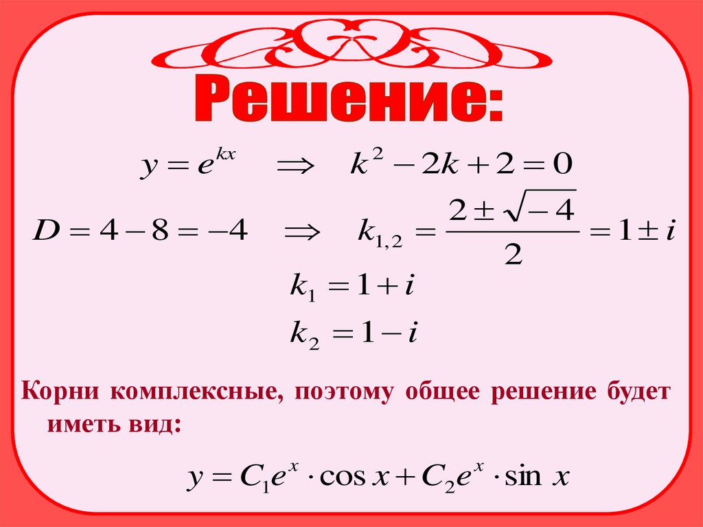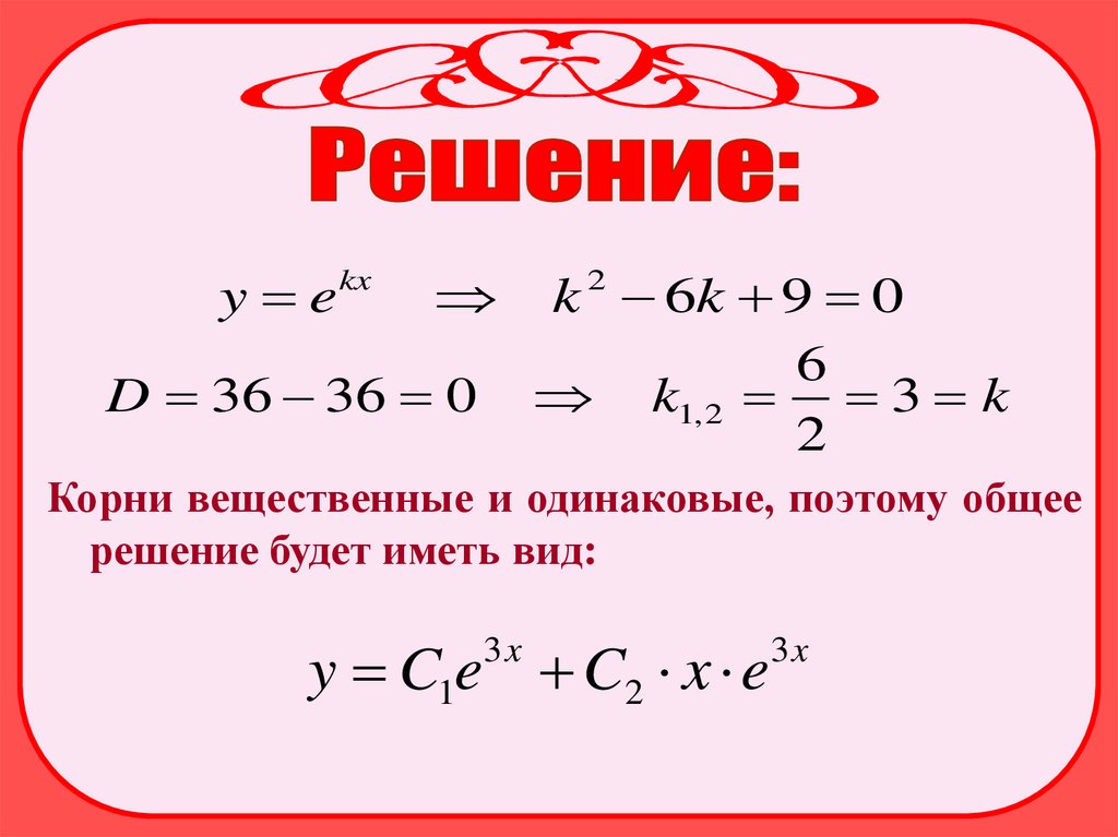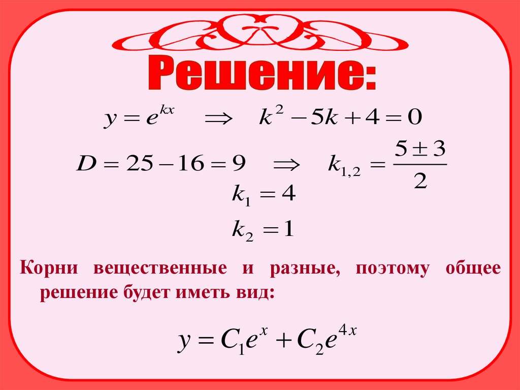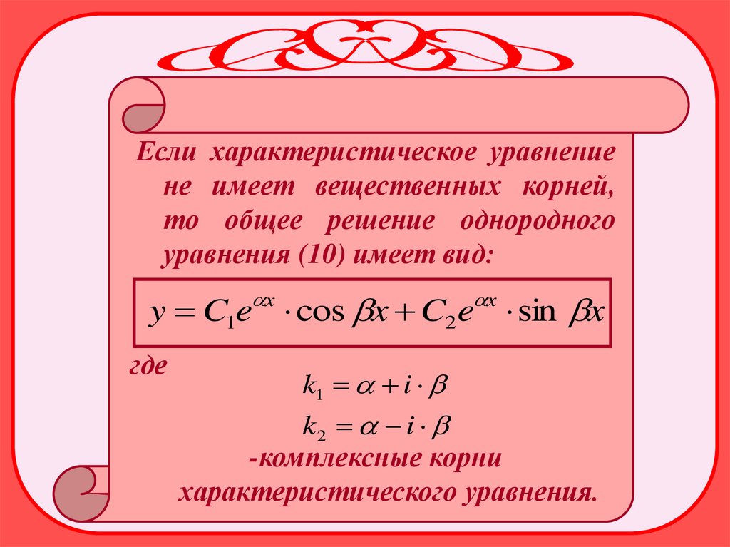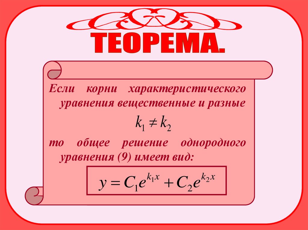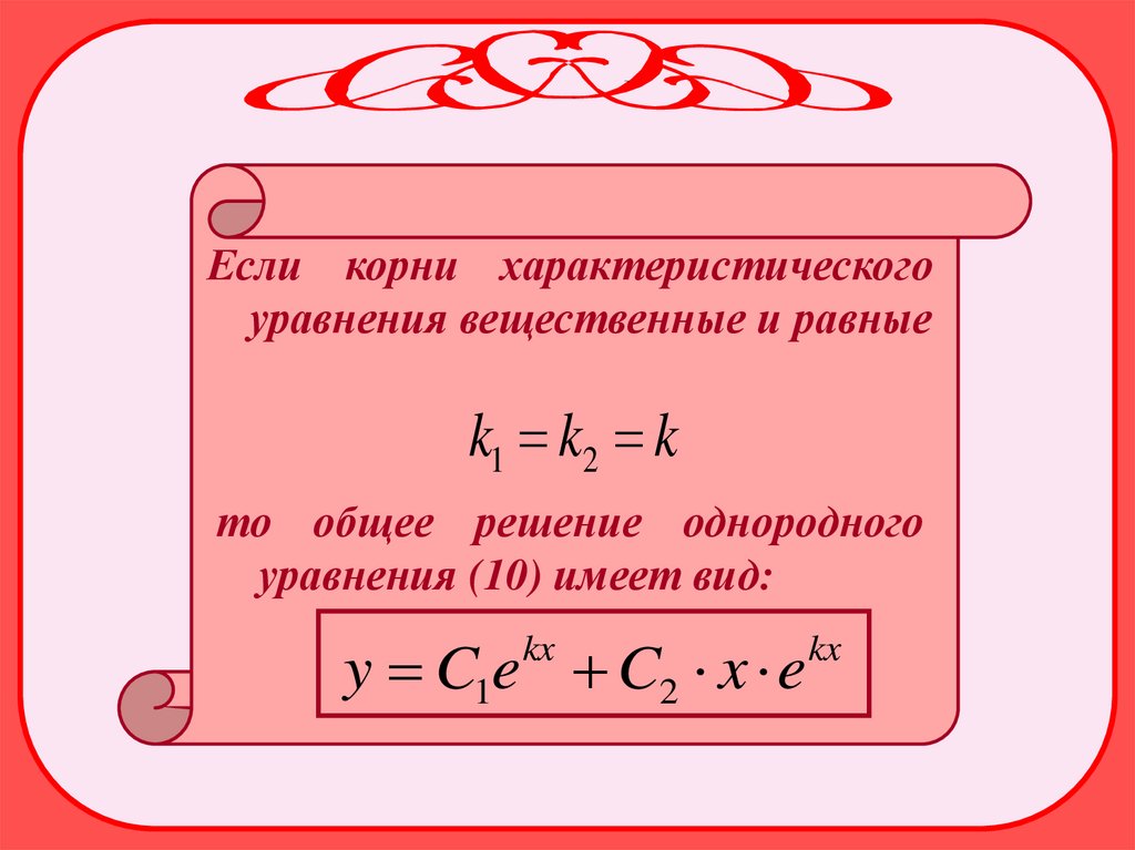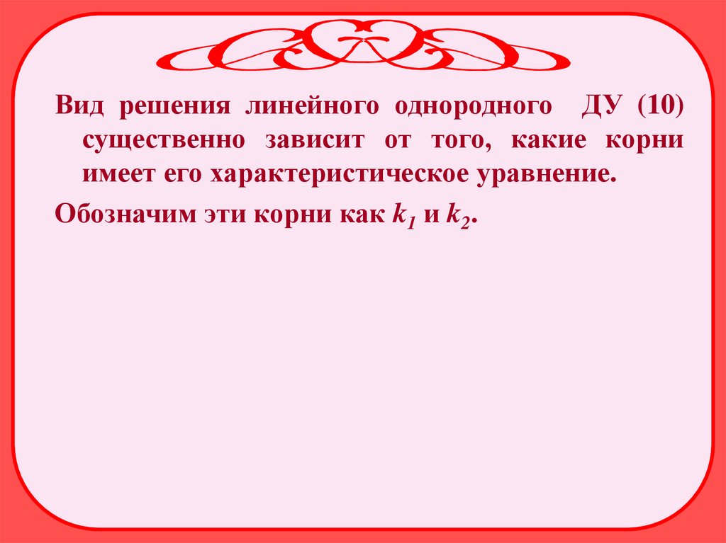 Вид решения линейного однородного ДУ (10)существенно зависит от того, какие корни