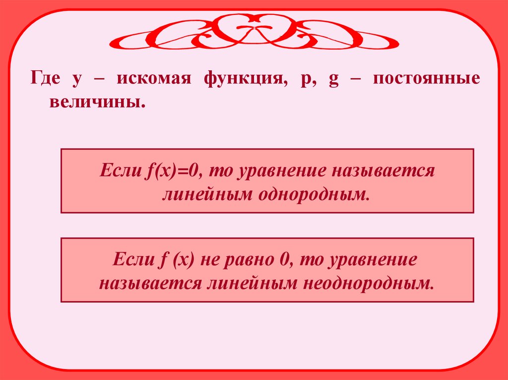 Рассмотрим случай, когда в уравненииy p( x) y g ( x) y f ( x)