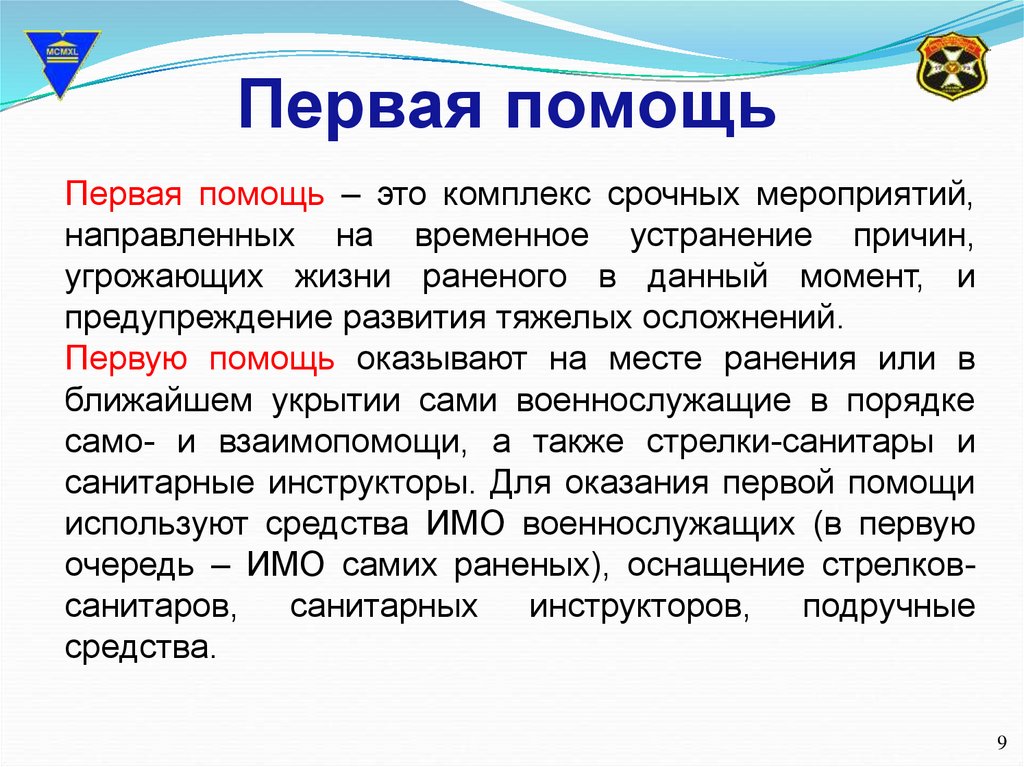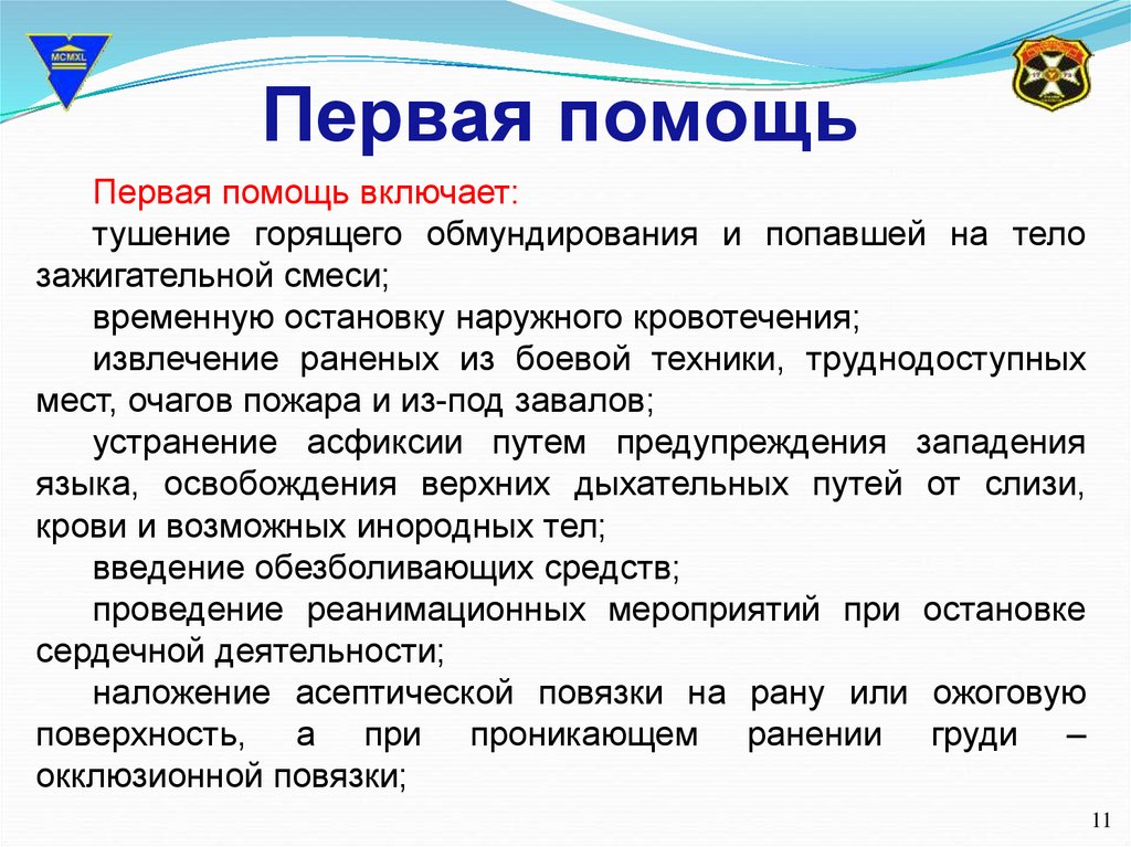 Первая помощьПервая помощь – это комплекс срочных мероприятий,