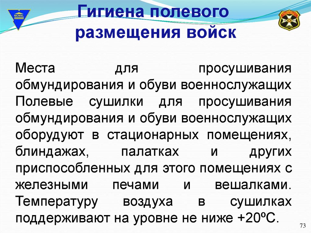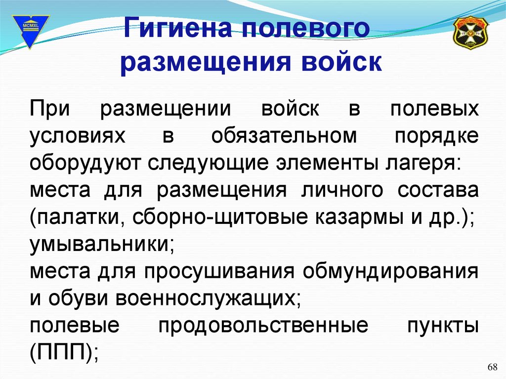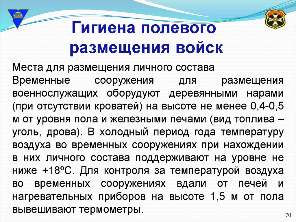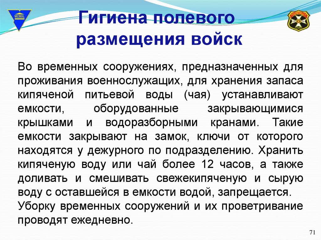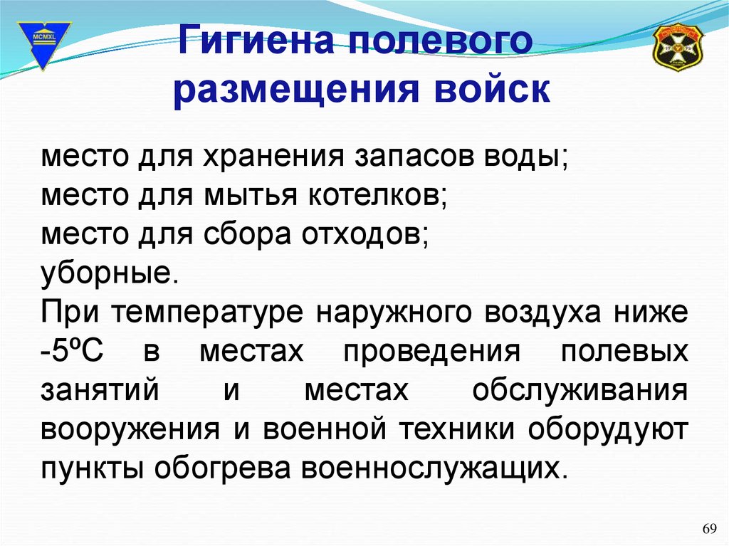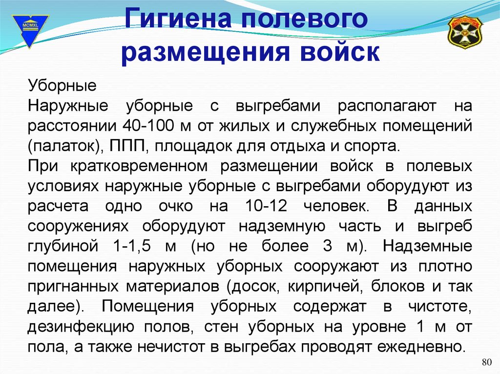 Место для мытья котелков оборудуют на удалении 2025 м от ППП, обеспечивают горячей водой. Отвод
