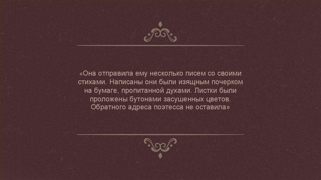 «Она отправила ему несколько писем со своимистихами. Написаны они были изящным почерком