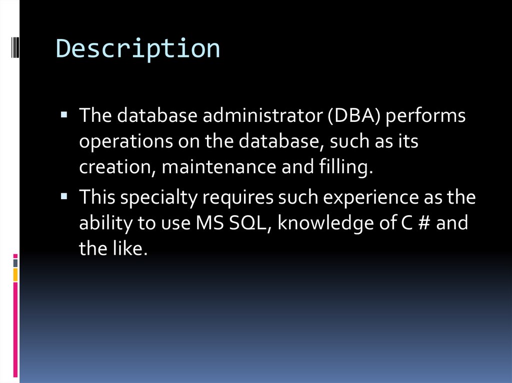 DescriptionThe database administrator (DBA) performs