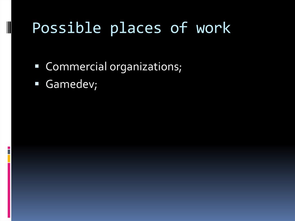 Possible places of workCommercial organizations;