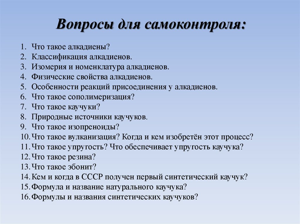 Вопросы для самоконтроля:1. Что такое алкадиены?
