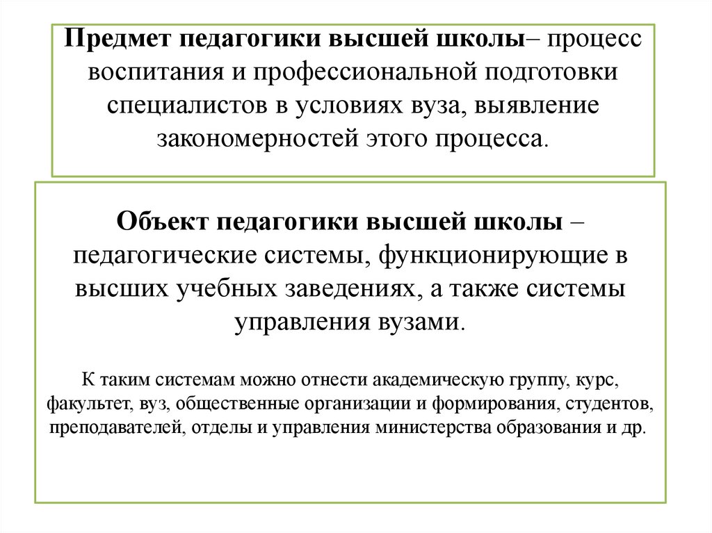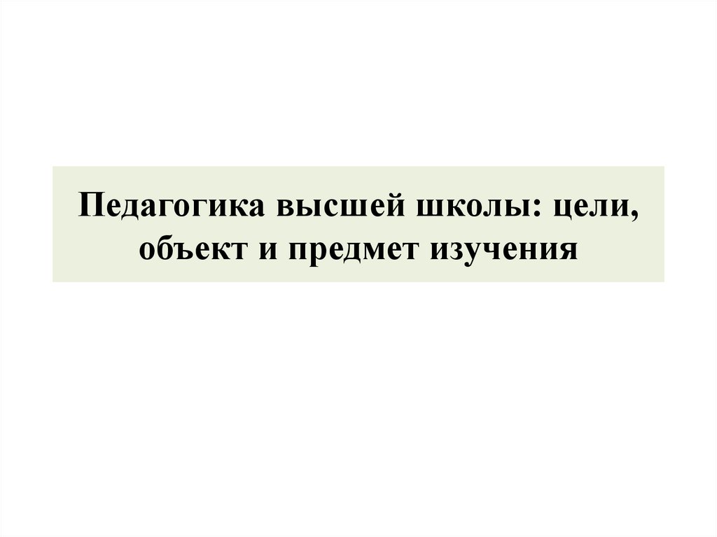 Педагогика высшей школы: цели, объект и предмет изучения. Лекция 1
