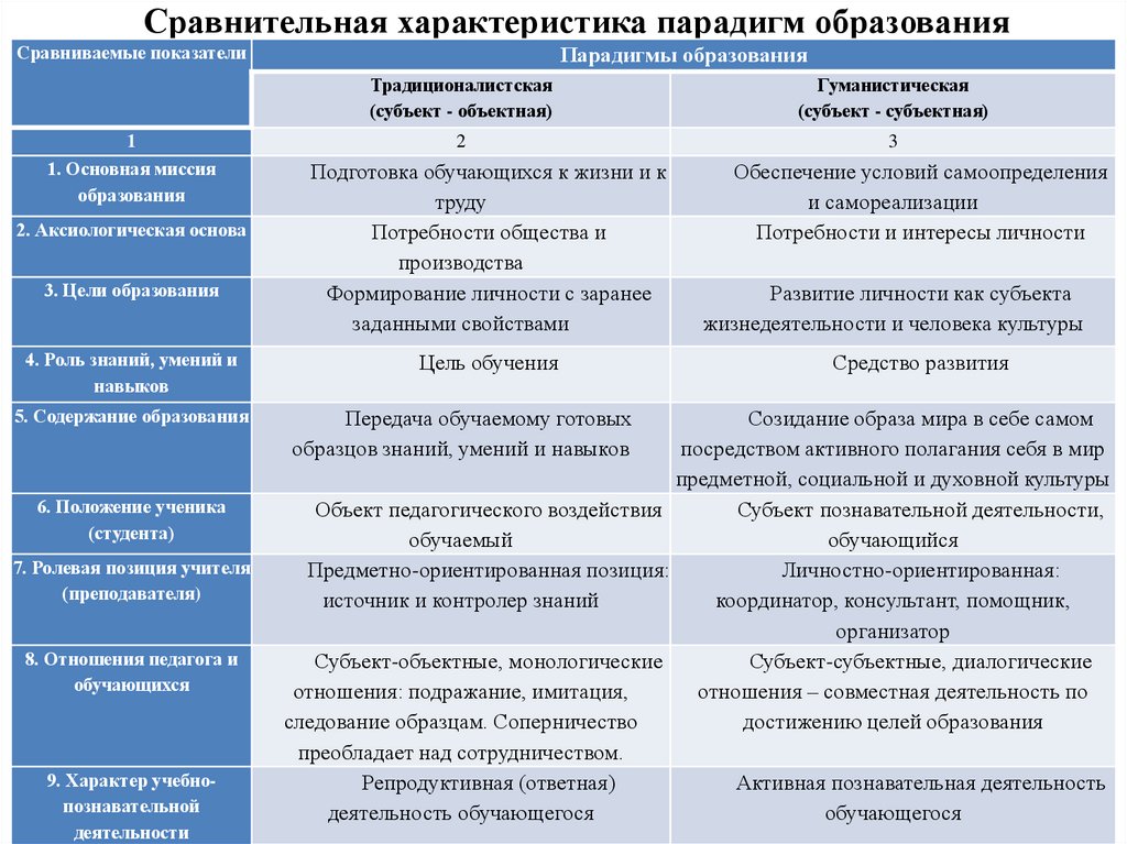 Сравнительная характеристика парадигм образованияСравниваемые показатели
