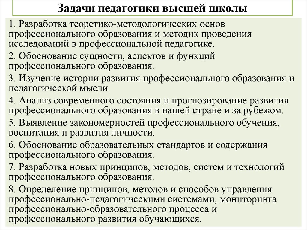 Задачи педагогики высшей школы1. Разработка теоретико-методологических основ