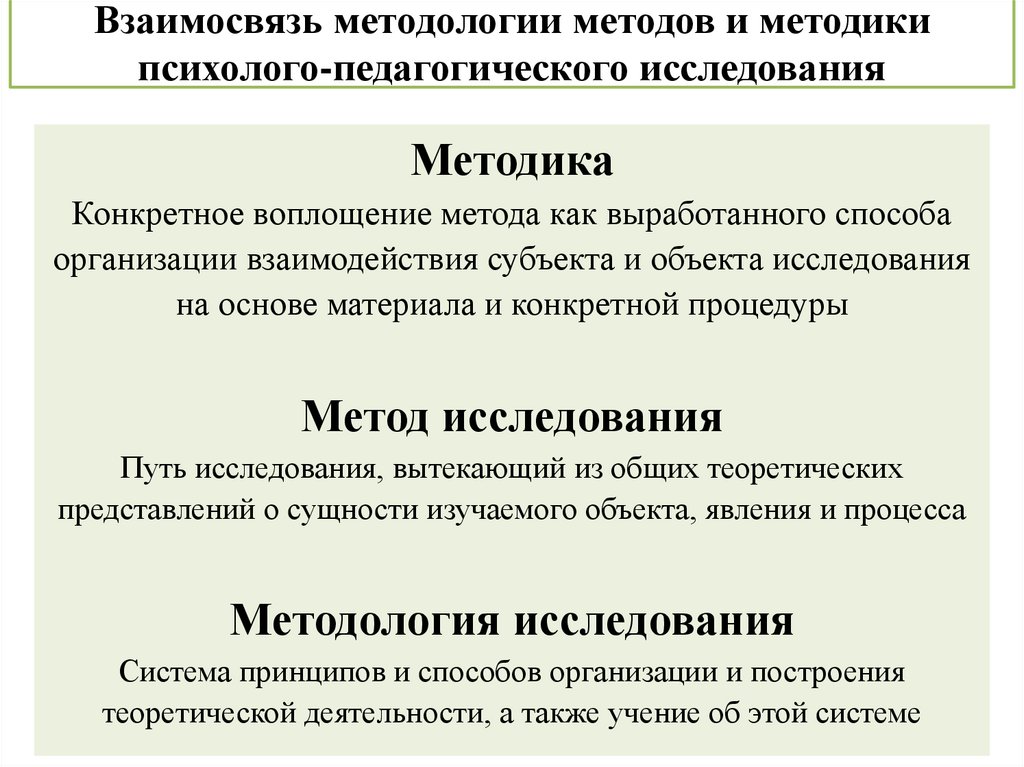 Взаимосвязь методологии методов и методикипсихолого-педагогического исследования