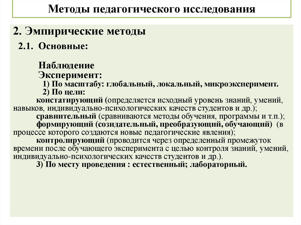 Педагогический эксперимент – это активное вмешательство исследователя в изучаемое им