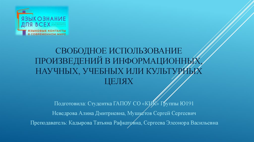 Свободное использование произведений в информационных, научных, учебных или культурных целях