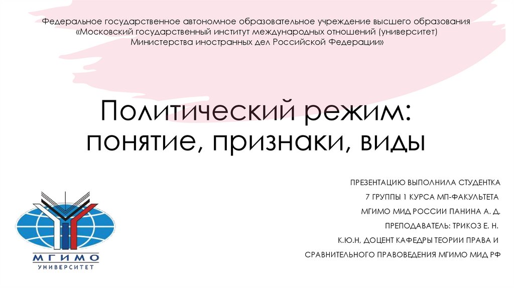МГИМО МИД РОССИИ ПАНИНА А. Д.