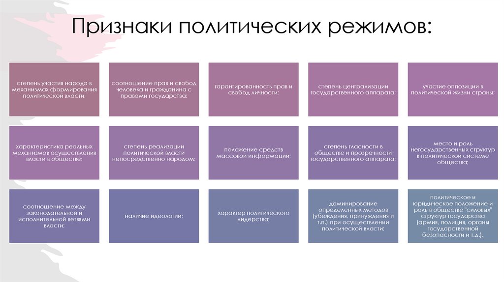 политических режимов;