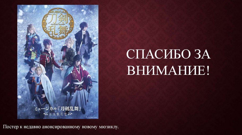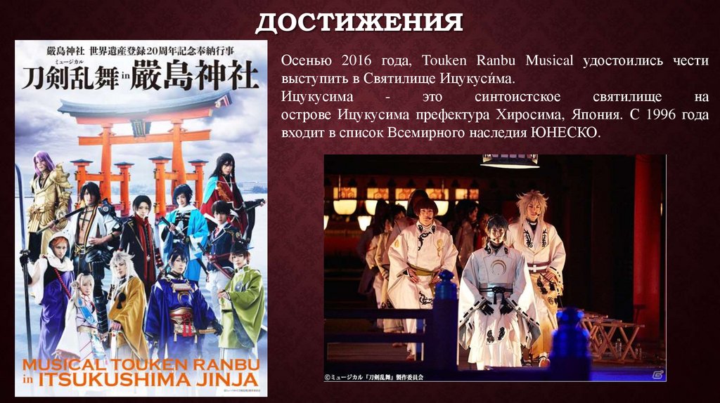 ДОСТИЖЕНИЯОсенью 2016 года, Touken Ranbu Musical удостоились чести
