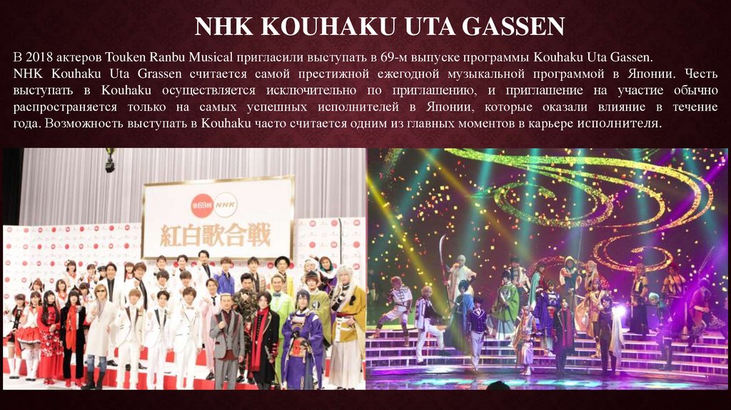 NHK Kouhaku Uta Grassen считается самой престижной ежегодной музыкальной программой в Японии. Честь