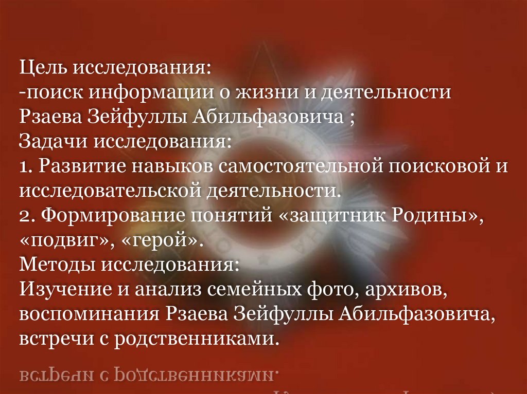 Цель исследования:-поиск информации о жизни и деятельности