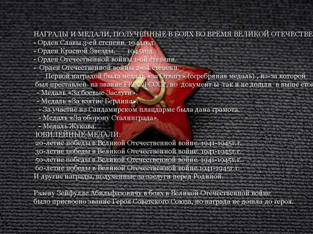 Рзаеву Зейфулле Абильфазовичу в боях в Великой Отечественной войне