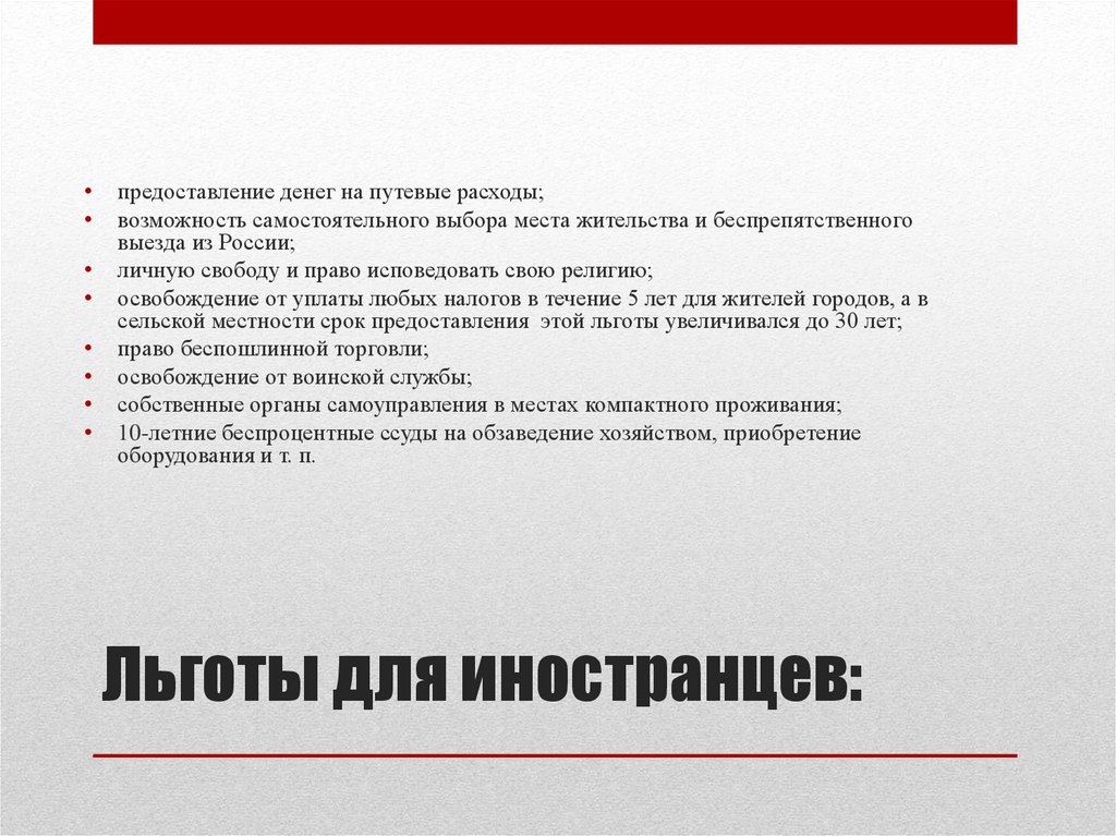 Активизация деятельности по привлечению иностранцев в Россию. При Екатерине 2