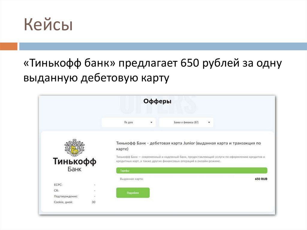 Кейсы«Тинькофф банк» предлагает 650 рублей за одну