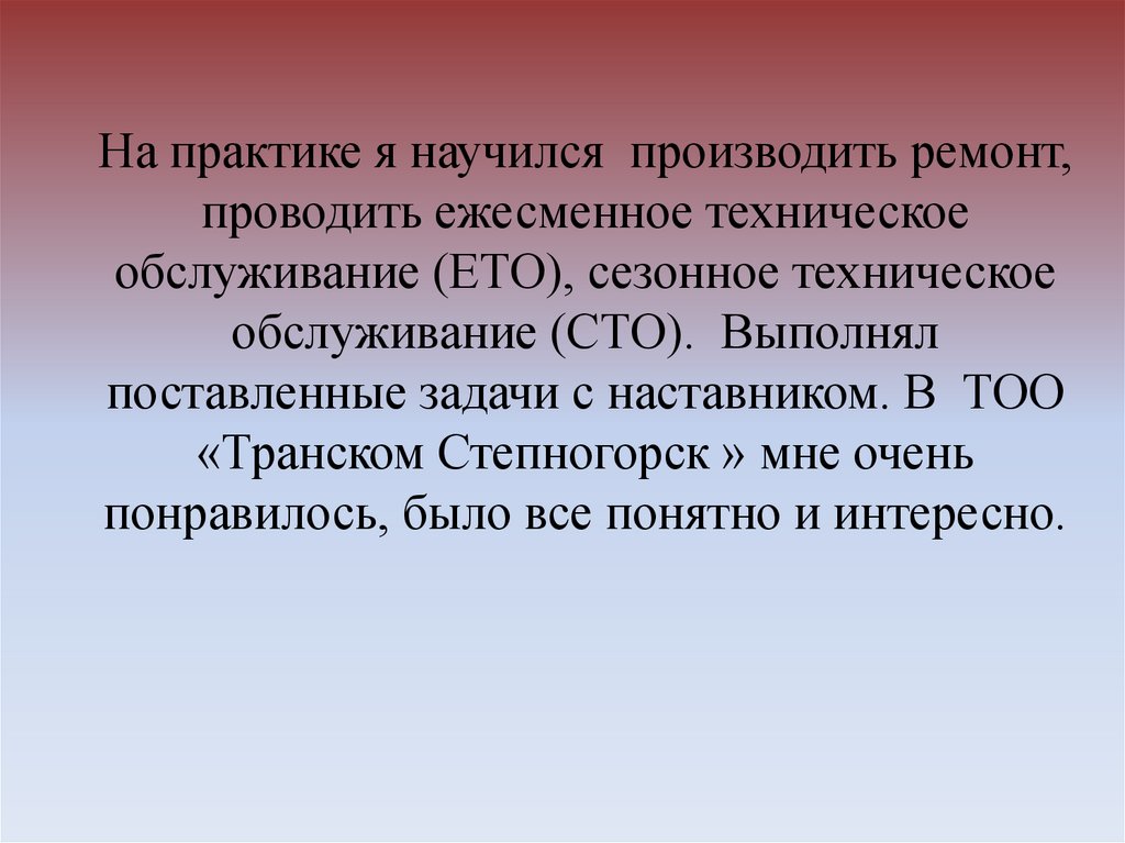 На практике я научился производить ремонт,проводить ежесменное техническое