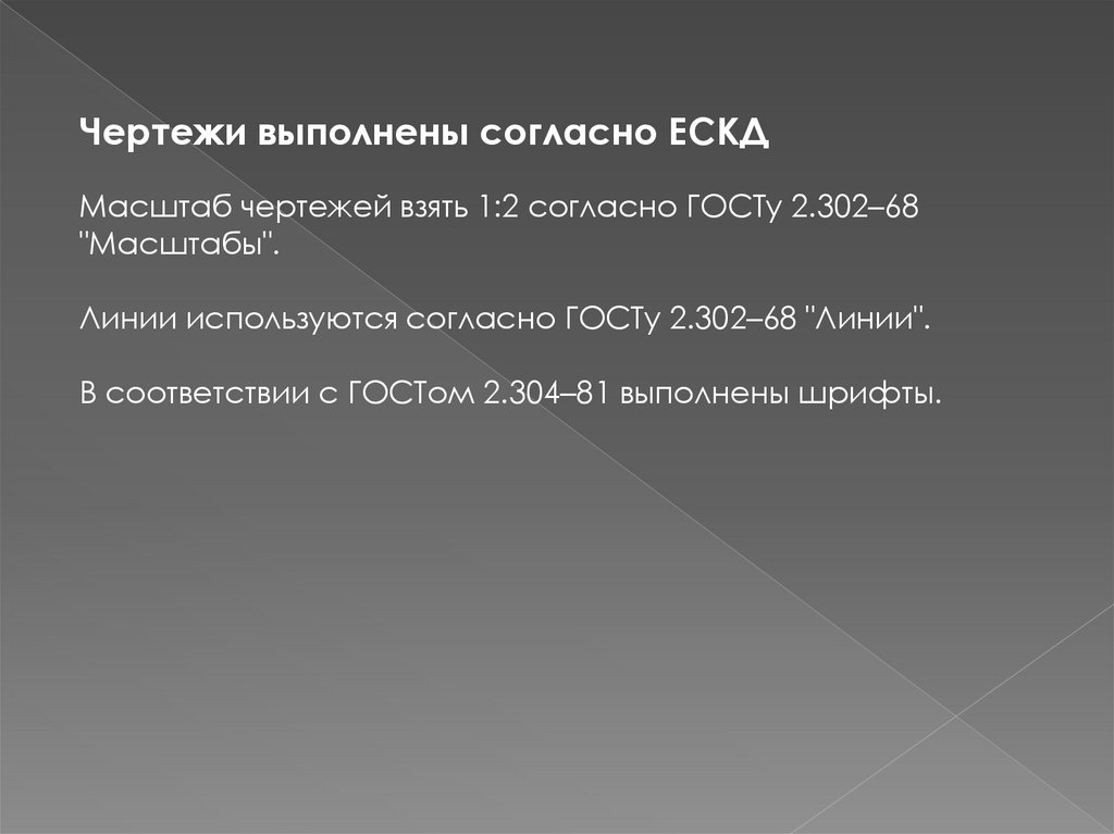 Чертежи выполнены согласно ЕСКДМасштаб чертежей взять 1:2 согласно ГОСТу 2.302–68