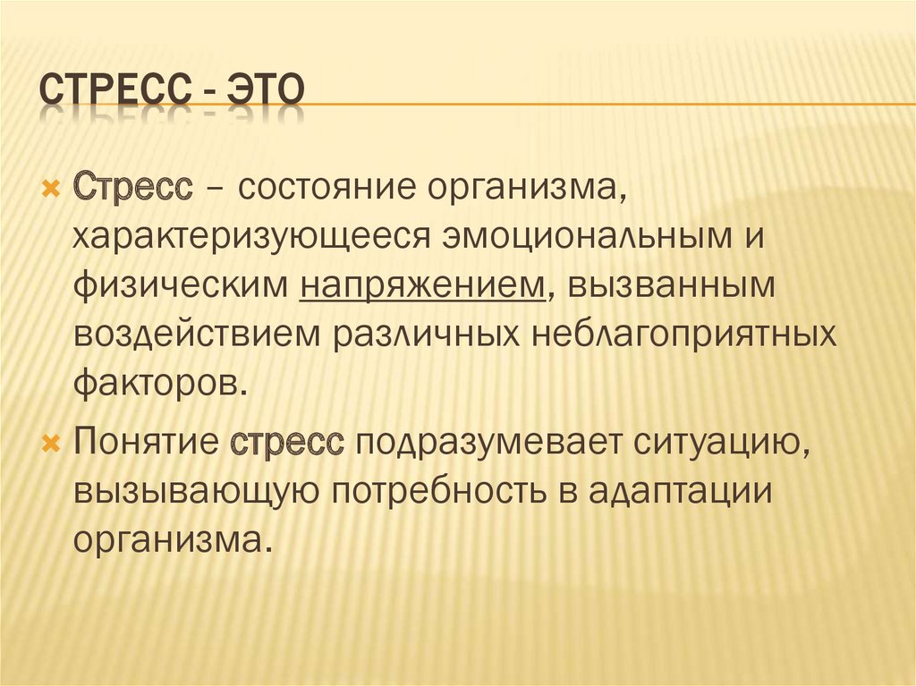 СТРЕСС - ЭТОСтресс – состояние организма,