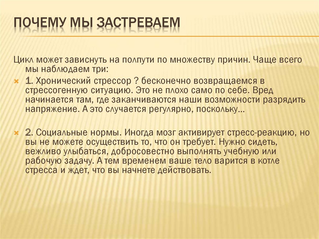 ПОЧЕМУ МЫ ЗАСТРЕВАЕМЦикл может зависнуть на полпути по множеству причин. Чаще всего