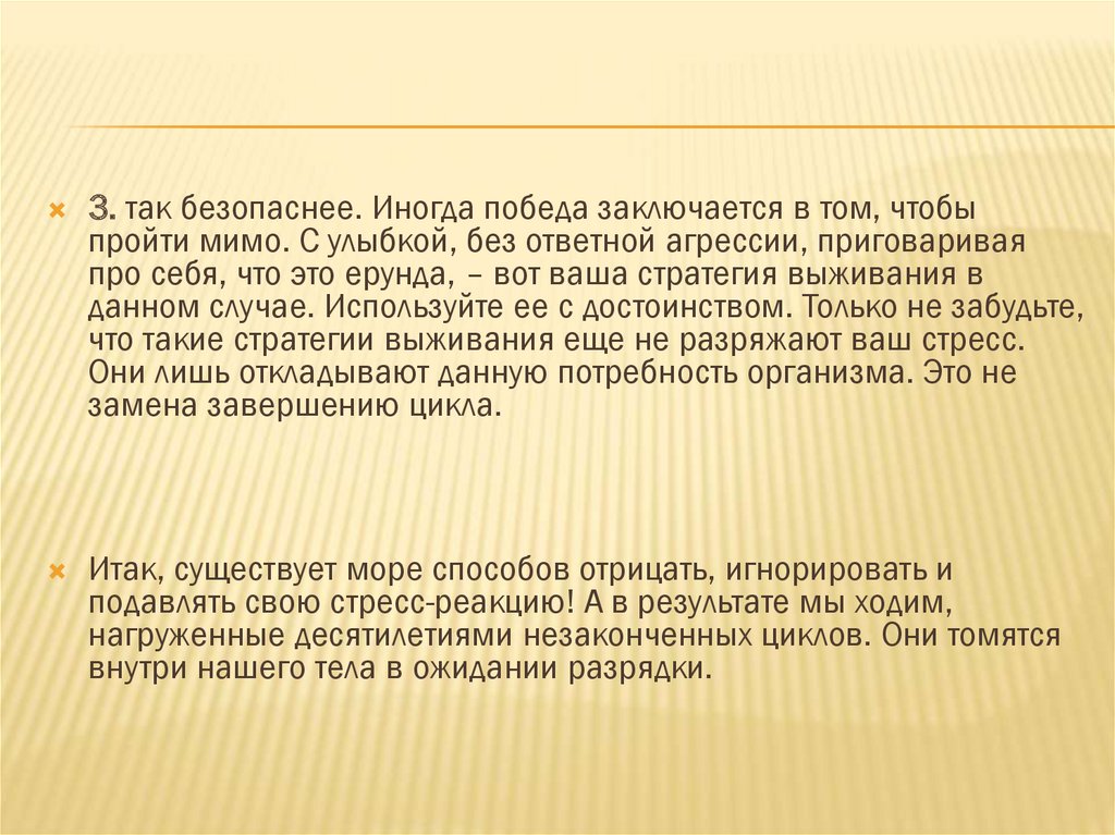 что такие стратегии выживания еще не разряжают ваш стресс.