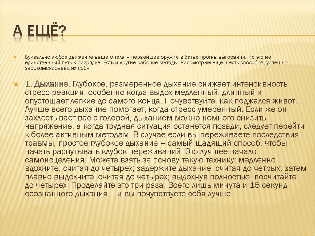 А ЕЩЁ?Буквально любое движение вашего тела – первейшее оружие в битве против выгорания. Но это не