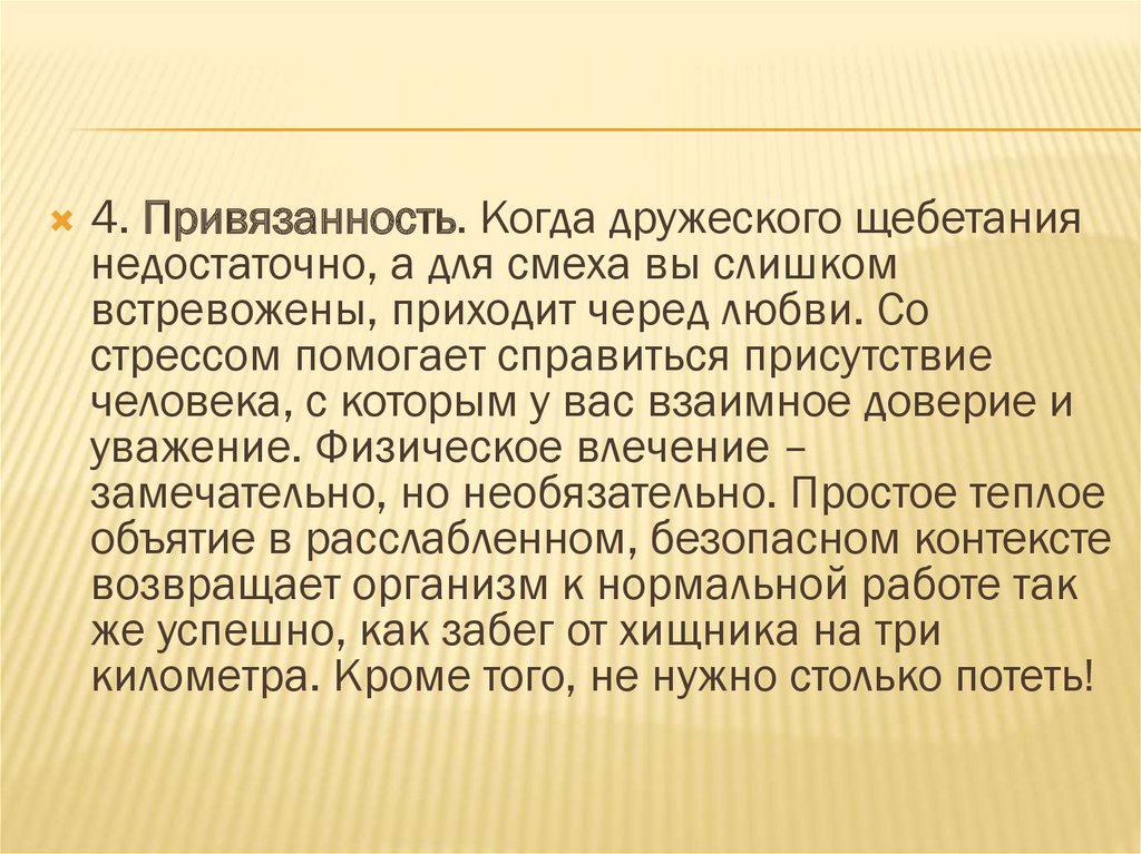 4. Привязанность. Когда дружеского щебетаниянедостаточно, а для смеха вы слишком