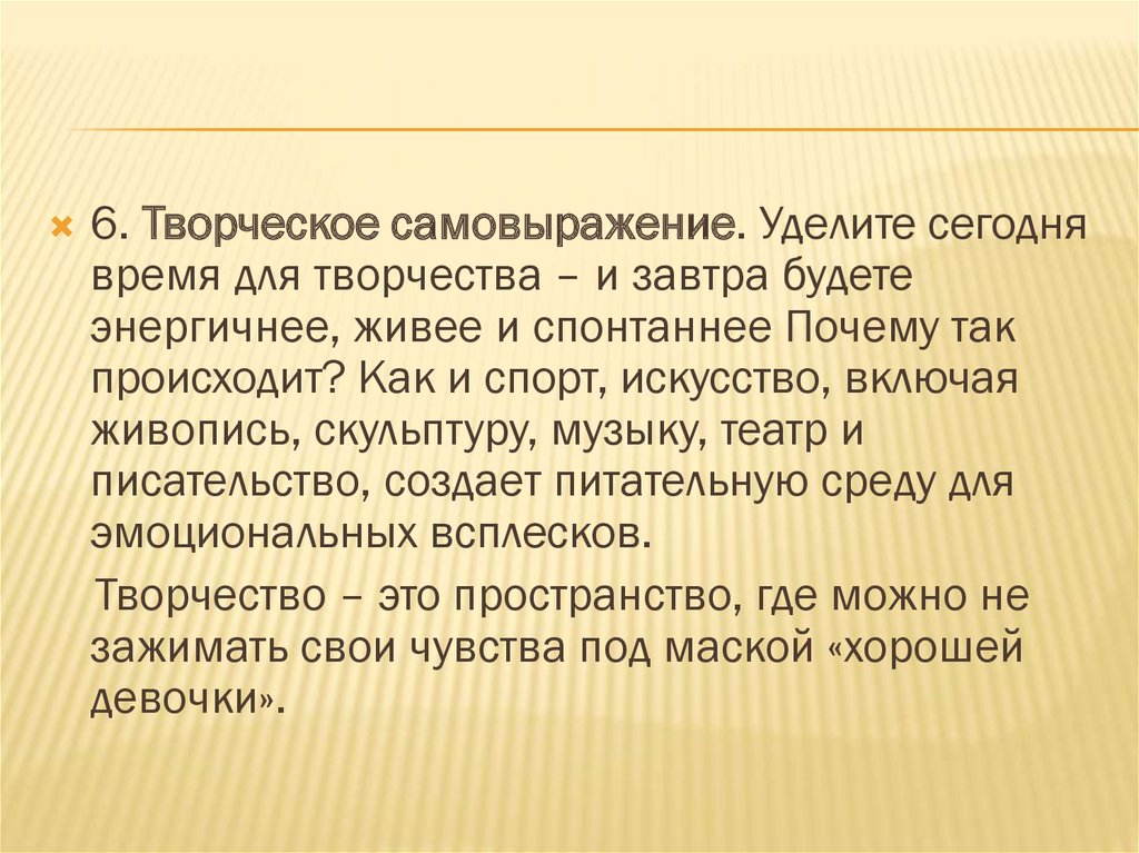 6. Творческое самовыражение. Уделите сегоднявремя для творчества – и завтра будете